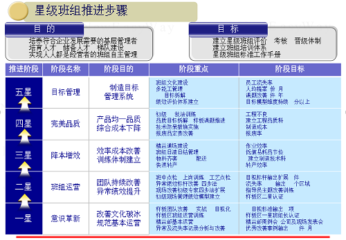 新益為6S咨詢公司概述:企業(yè)管理的核心在基層,因?yàn)槠髽I(yè)管理任務(wù)的落實(shí)都是靠基層的班組長(zhǎng)在具體執(zhí)行,企業(yè)成千上萬(wàn)的工人工作都是靠班組長(zhǎng)在監(jiān)管;也就是說(shuō)企業(yè)執(zhí)行力的強(qiáng)弱、效率的高低取決于企業(yè)班組長(zhǎng)能力的高下,今天我們就來(lái)講講打造五星班組的前兩點(diǎn):五星班組推進(jìn)背景與目標(biāo)、五星班組的推進(jìn)方向。
