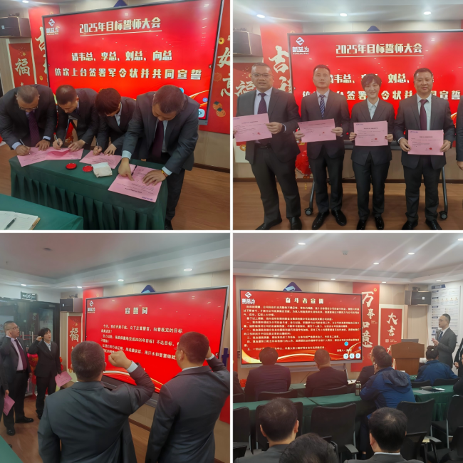 午后,會議進入公司層面深度總結,全方位剖析全年經營狀況,權威發布新益為集團 2025 年經營規劃,高層領導紛紛建言獻策。人事任命環節莊重肅穆,高層宣讀任命通知,新晉人員莊嚴宣誓就職。張總壓軸總結,系統回顧公司運營、管理與目標執行情況,犀利指出問題癥結,明確 2025 年發展目標及落地舉措。