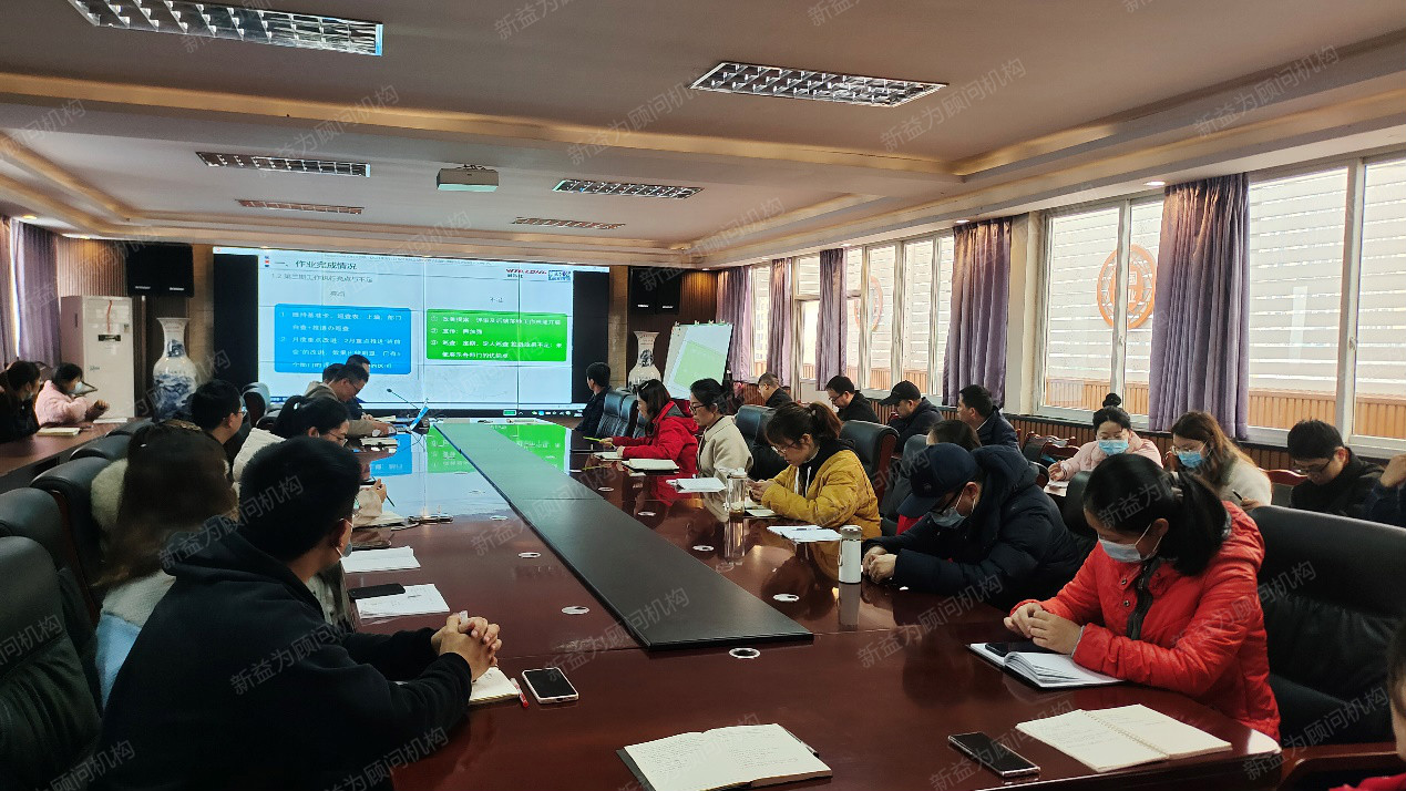 近日,某大型環保集團按照目標管理項目推行計劃,在公司領導潘副總經理和新益為顧問老師的帶領下,精益辦組織集團各管理部門、事業部及子公司開展了2021年度部門方針和目標的討論工作。