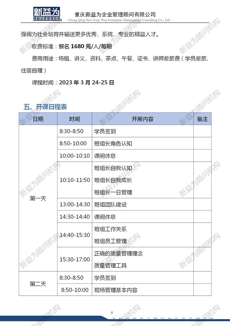 重慶2023.03 精益班組長勝任力提升訓練營
